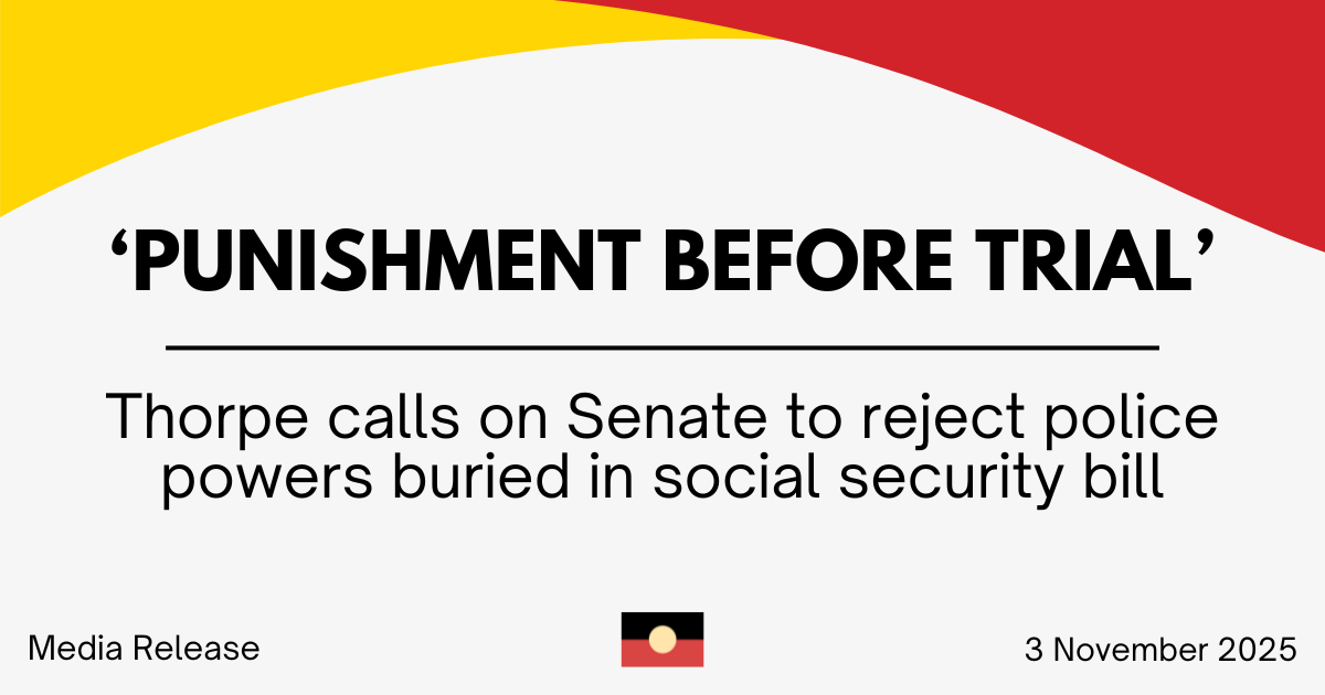 Senator Lidia Thorpe will move an amendment to strike out Schedule 5 of the Social Security and Other Legislation Amendment (Technical Changes No. 2) Bill 2025, after the Government quietly inserted a measure to expand police power into the social safety net.